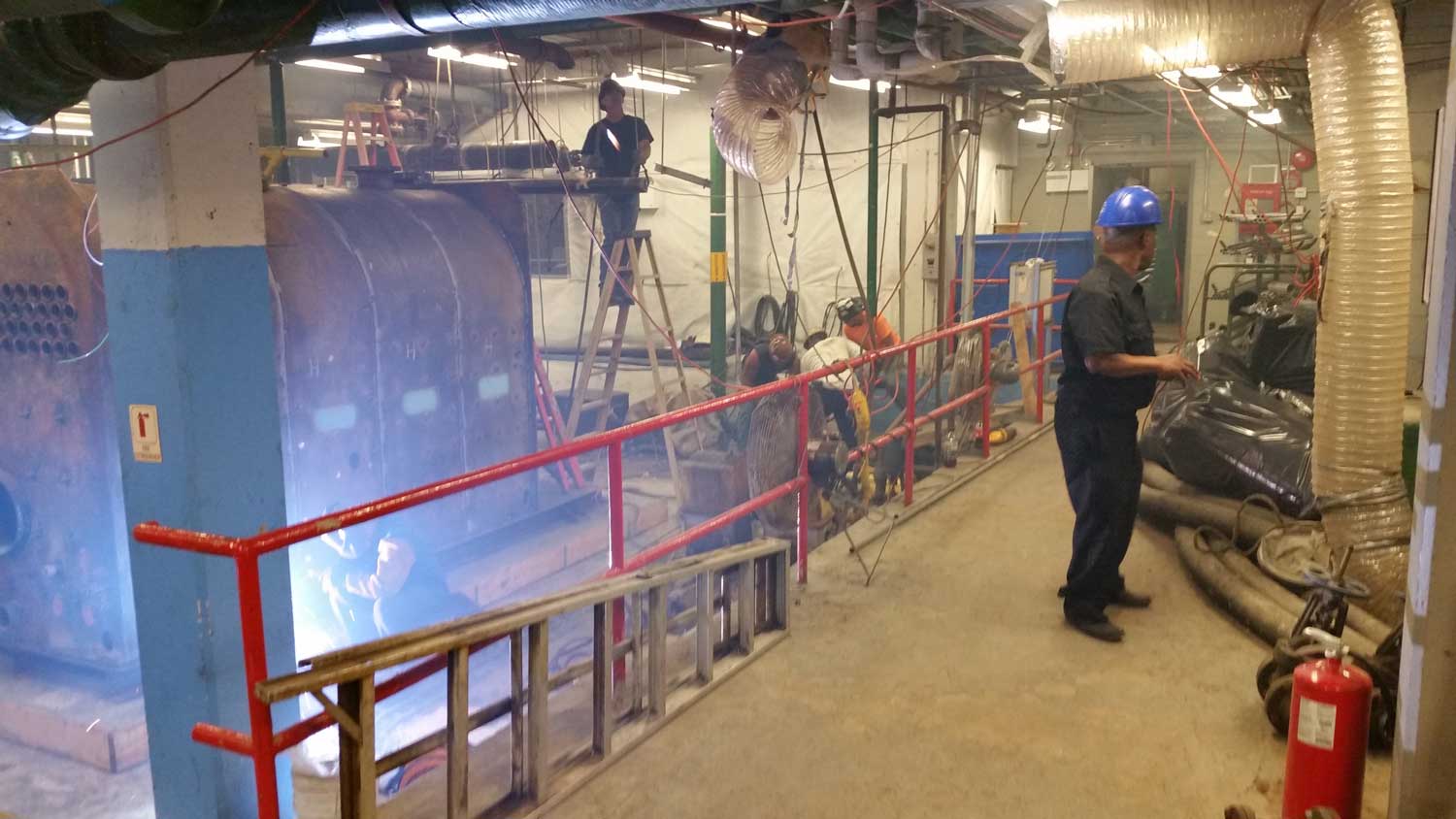 Complete teardown of boiler rooms, chiller plants, and mechanical spaces with careful coordination.